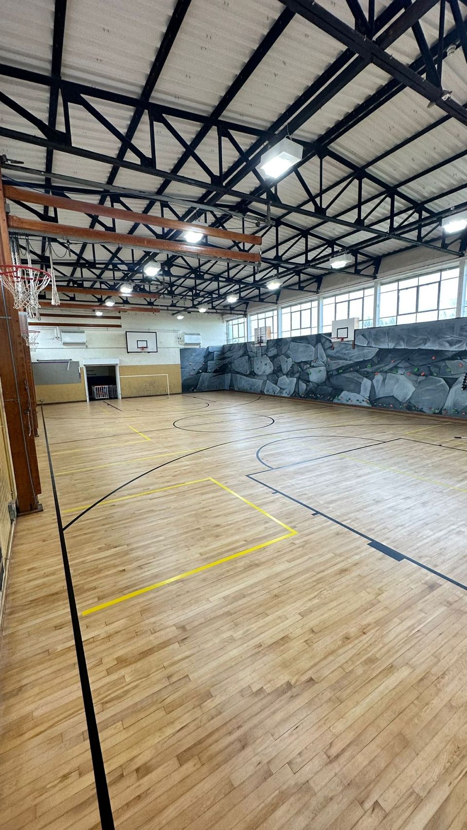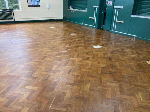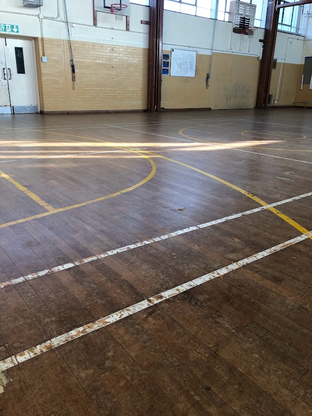 Finally, we applied a durable commercial lacquer system, including new painted sports lines, to ensure that this hall performs effectively for many years.