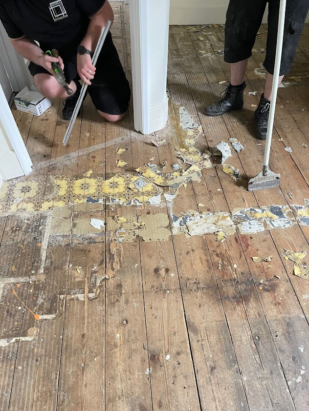 One of our customers discovered their pine floorboards hidden beneath carpet and vinyl tiles. In order to bring out the natural beauty and longevity of the floor, we removed the old flooring and proceeded with a comprehensive sanding process.